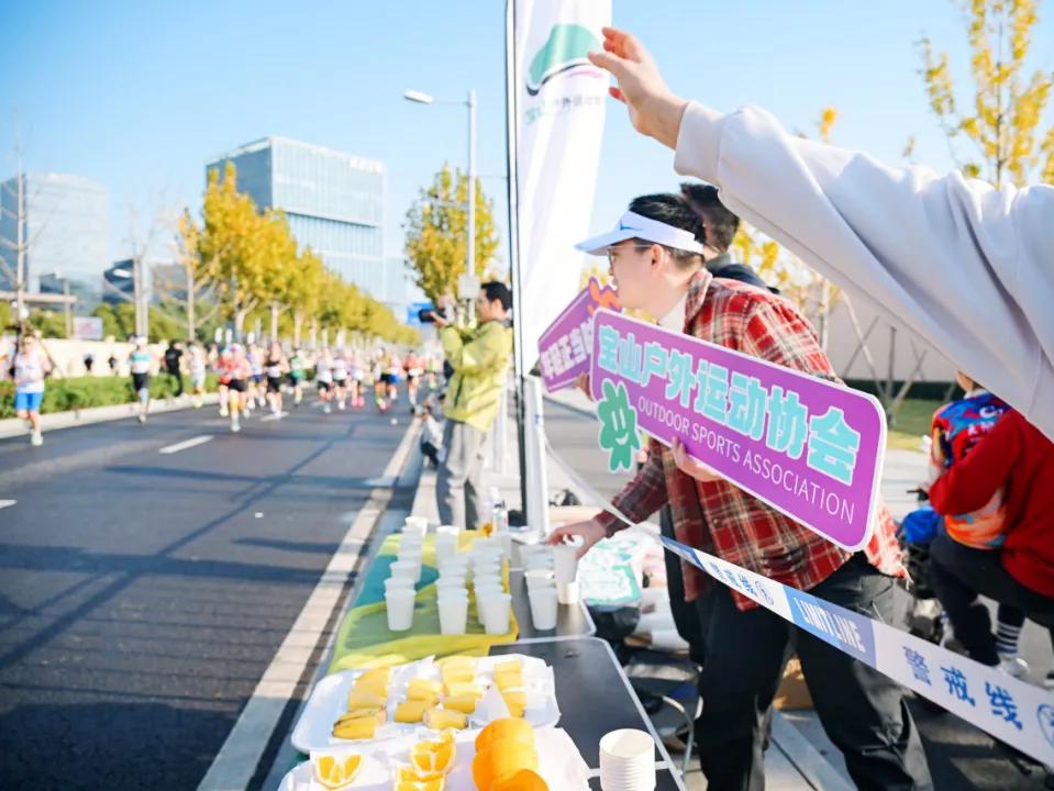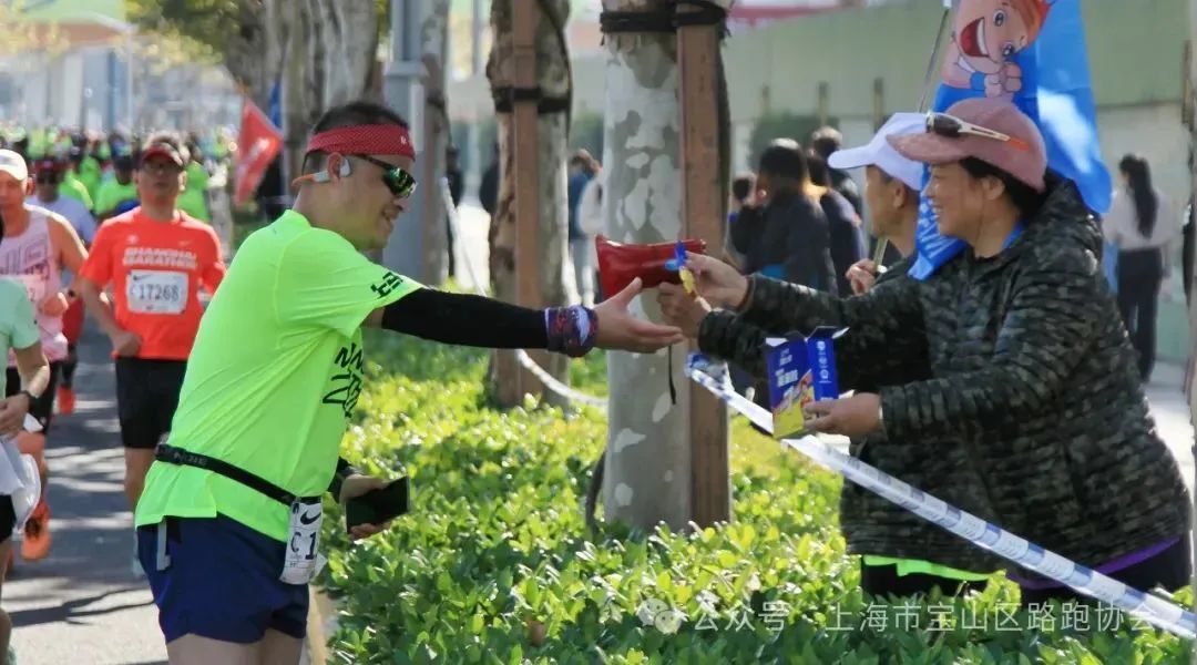 宝山区户外活动协会与上海卢湾跑团合作,志愿者们赶赴跑道,为跑者提供水、运动饮料、能量胶等各种补充。在炎热和疲劳的挑战中。