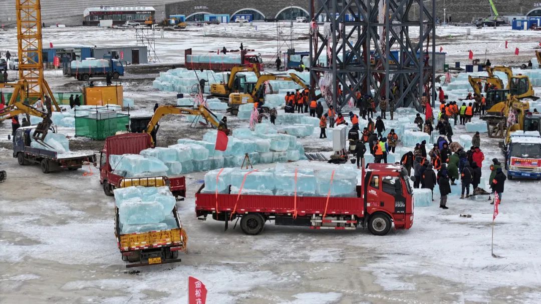 11月27日,储存了10多个月的冰,被运往第26届哈尔滨冰雪世界公园。哈尔滨市气象局逐步提供未来15天的预测和施工建议,为公园合理安排各种工种的延续工作提供保障。冰雪世界 供图