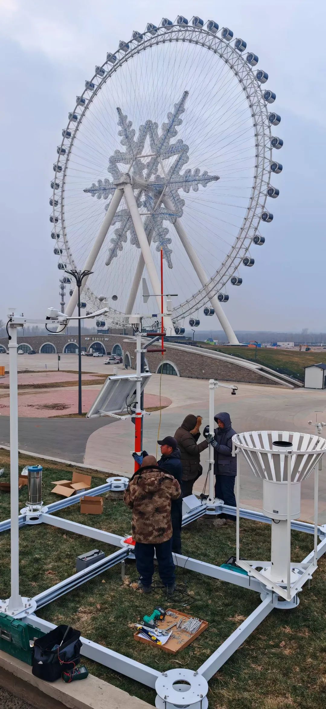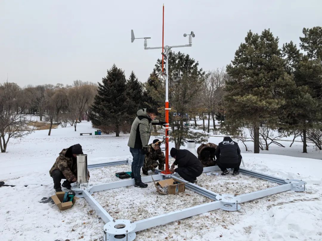 11月18日,哈尔滨市气象局在第26届哈尔滨冰雪大世界公园核心区域建设9个元素自动气象站,实时获取温度、降雨、风向等气象数据,为冰建施工和公园安全管理提供有力支持。图/文 王继梅