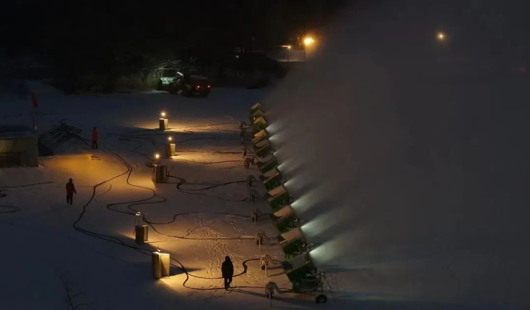 十一月二十七日晚八点左右,十多台制雪机马力全开,昼夜不停,意味着太阳岛正式进入繁忙的雪景建设季。太阳岛景区 供图