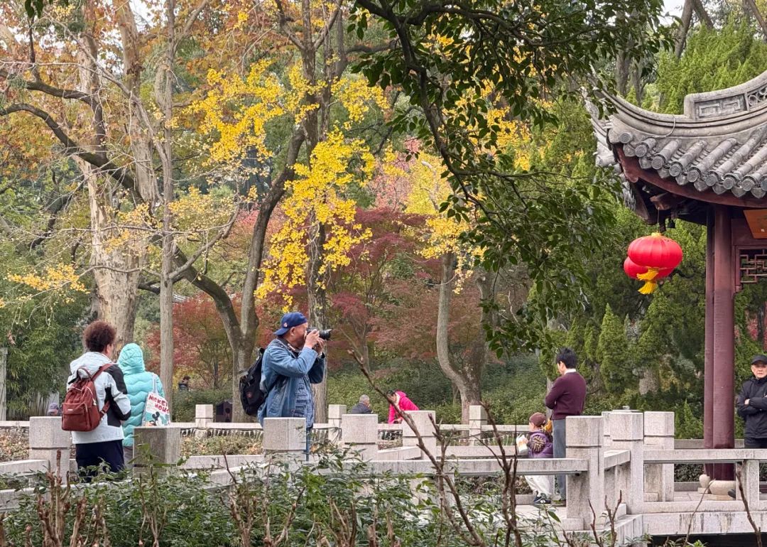 “我每年秋冬都来,已经连续十年了。我对这里的每一棵草和树都很熟悉,也很怀念。”来自普陀区的摄影师施根祥告诉记者,今年他特意用镜头记录了银杏和红枫的秋色,以及即将枯萎的残荷叶。他感慨地说:“古董园的秋色特别迷人,小巧精致,很迷人!”