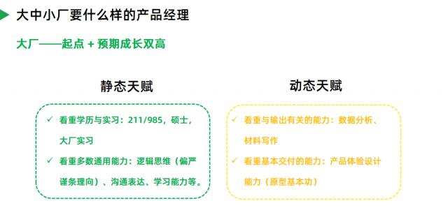 与此同时,教师还会根据求职季的背景,从学校招聘面试官的角度,带大家分析大、中、小厂产品经理的用人要求和加分项。