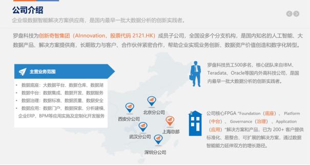 近年来,随着人工智能技术的快速发展,公司积极拥抱新技术,成立了专业的人工智能R&D团队,将人工智能与数据服务紧密结合,推出了数据中台。 ( P-Platform ) 和数据应用 ( A-Application ) 等待创新产品,推动数据服务进入智能时代,为用户提供更有价值的服务。