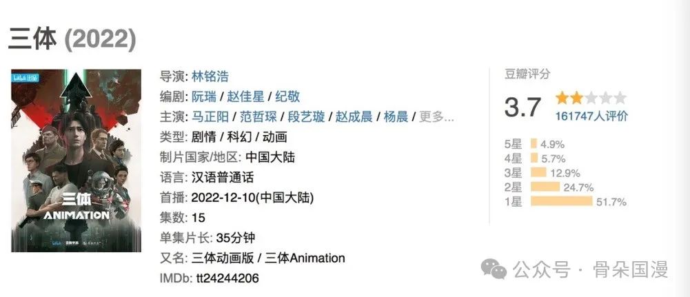 有意思的是,同样是IP改编的动画《三体》的豆瓣评分只有3.7,成为2020年以来最低的动画作品之一。这部低分动画的制作公司和《我的三体之章北海传》一样,也有艺术和绘画。这种现象在2020年也引起了很多讨论。