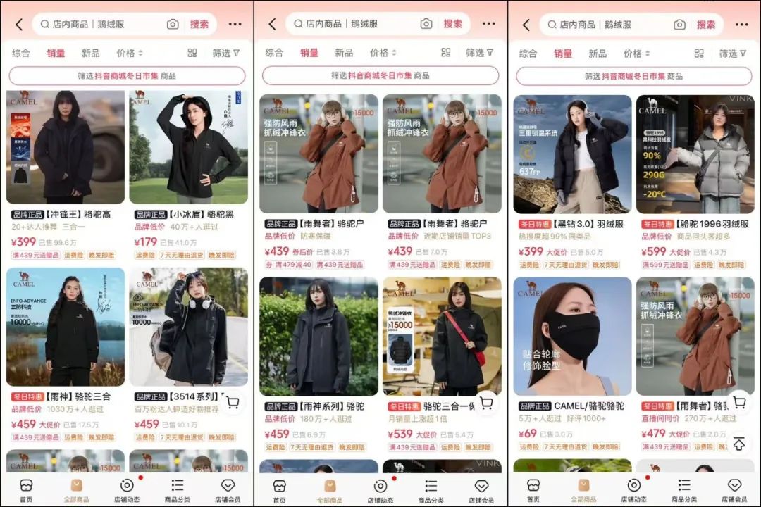 对于骆驼来说,尽管过去四年有很强的增长势头,但是过分依赖单一爆款,随着市场饱和和竞争的加剧,触及天花板,增长放缓是必然的。以颤音CAMEL骆驼官方旗舰店为例。目前店内销量第一的是“【冲锋王】高能三合一两件套生活夹克”,销量达到99.6万,是第二大销量的两倍多。