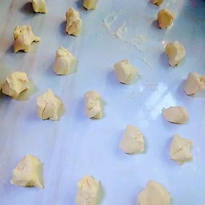 2、先将面团揉成条状,再分成大小均匀的小剂子。