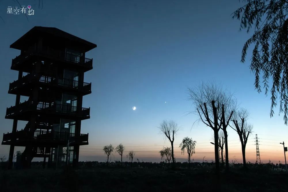金星伴月于2024年11月5日在天津市静海区团泊湖拍摄。杨婧 摄