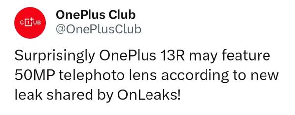 曝一加 13R 将搭载 5000 万像素长焦 本月发布国内版本