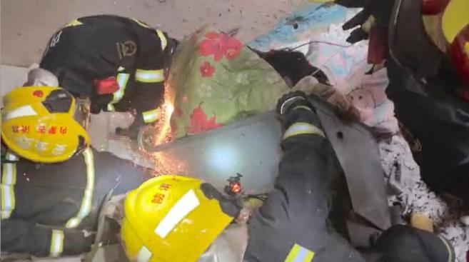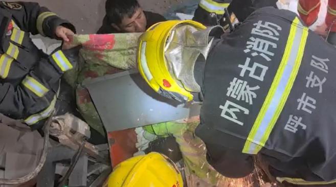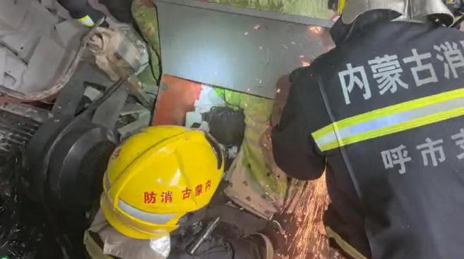 原题:“紧急救援!一名呼和浩特女子的左腿被破碎机卡住了。