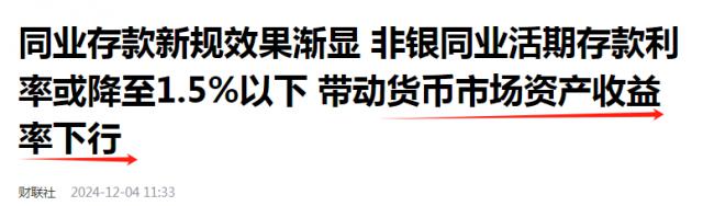 翻译过来,余额宝、银行宝贝货币基金的收益率持续下降,不能超过 7 天期逆回购率。