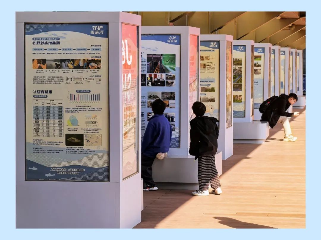 “守护绿色家园”部分展出了“守护母亲河”和“守护城市自然”两大系列科普展板,即上海自然博物馆“与科学家零距离”活动。