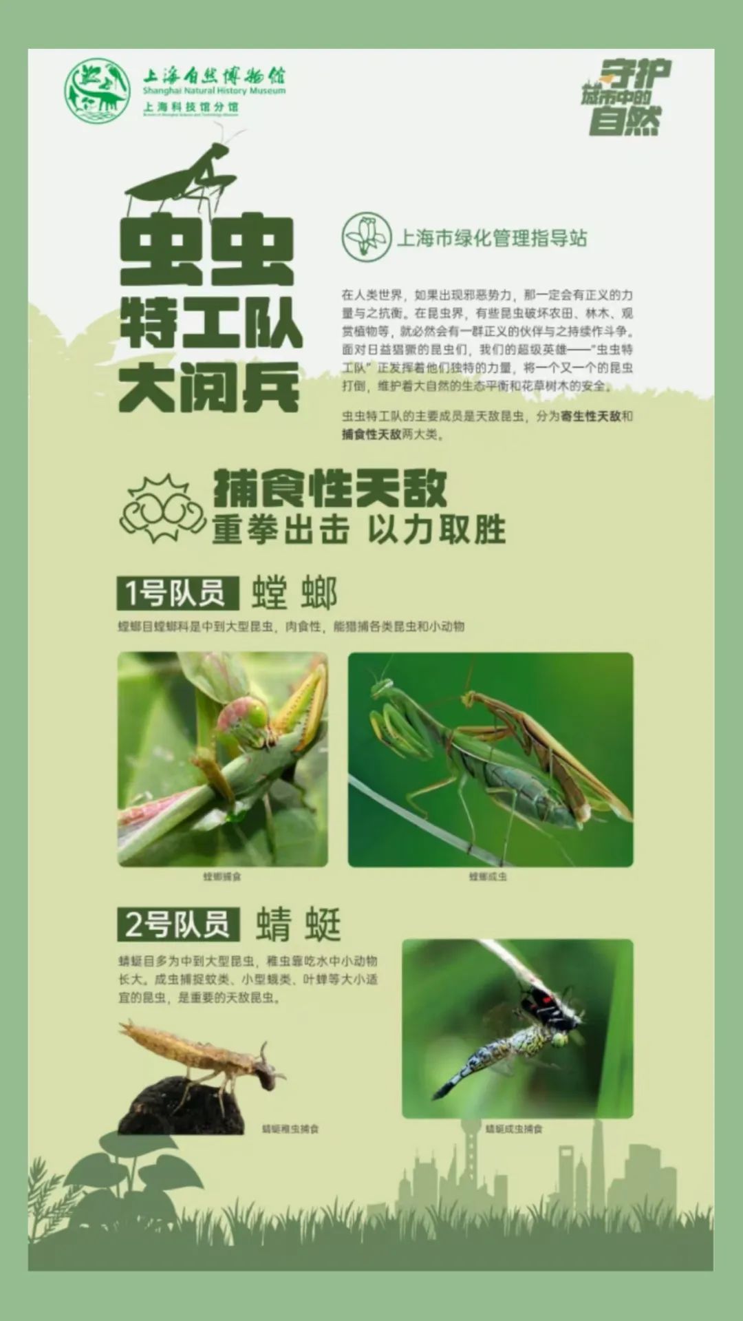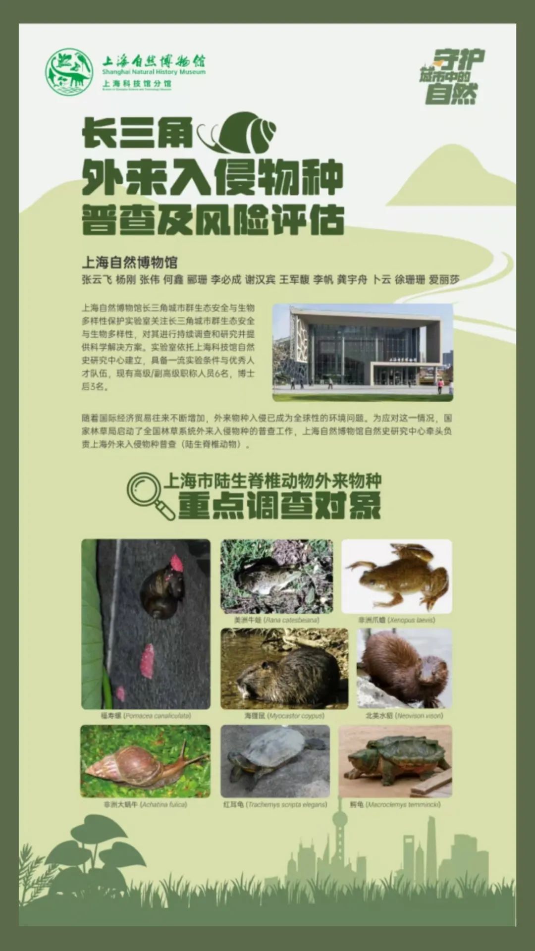 本次科普展得到了上海自然博物馆的大力支持,“守护绿色家园”展出了上海自然博物馆“与科学家零距离”活动中的两大系列科普展板:“守护母亲河”和“守护城市自然”。