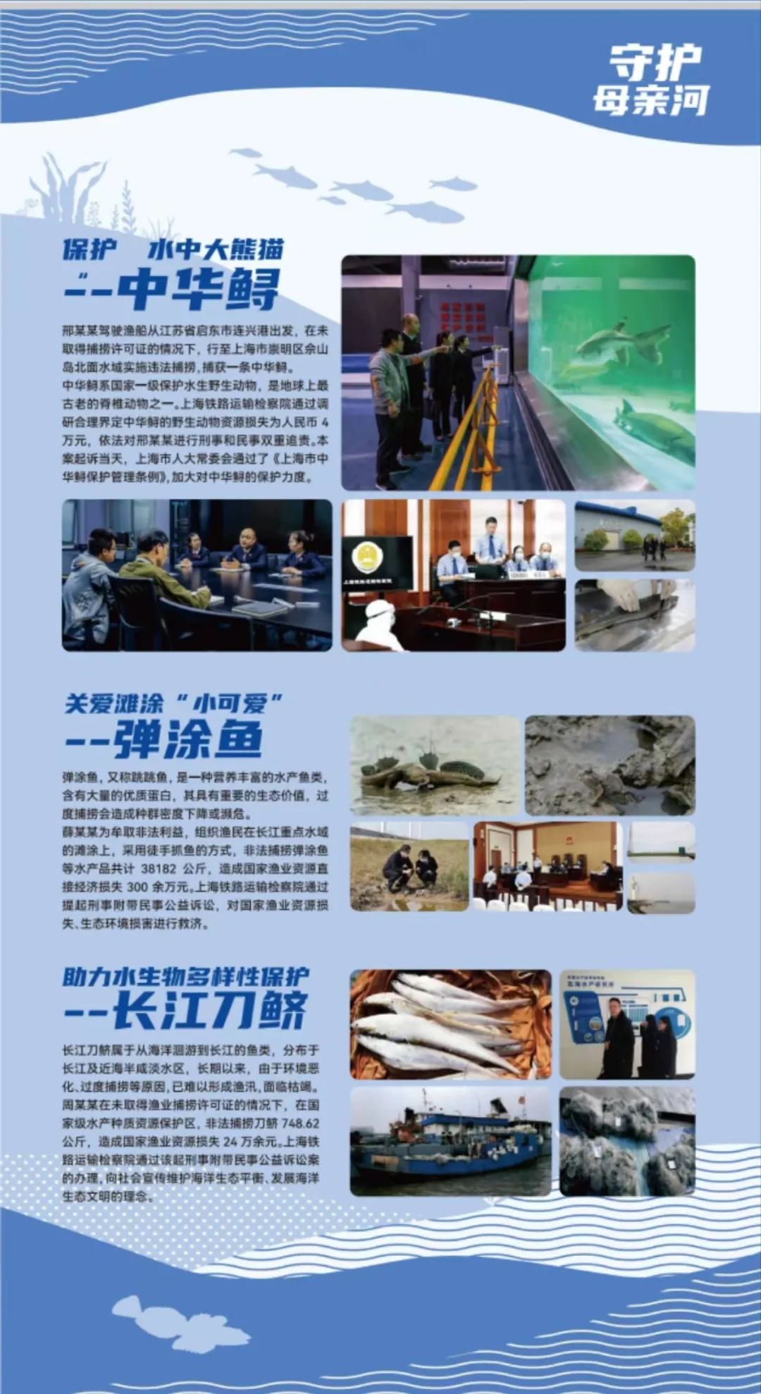 “守护母亲河”系列从“长江水生生物多样性”、“长江旗舰物种保护”、“水生生态修复”、“水生入侵物种预防”等多个维度展示了上海科研院所、高校及相关专家学者对长江水生态环境保护及相关重要科研实践成果。