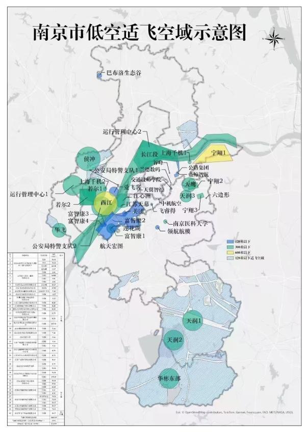 目前,南京已批准空域42个区域,总面积1685.69平方公里;已批准118条航道,总里程1473公里。有131个低空起落场(点),其中5个人机起落场,126个无人机起落场。培养了试飞训练、政务巡检、海事巡检、海鲜配送、跨江物流运输、旅游观光等特色低空场景。