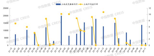 2021 年 12 月 -2024 年 11 月宁波各类土地交易楼盘均价及溢价率走势