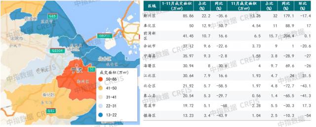 2024 年 1-11 月 , 兖州区、奉化区、前湾新区等地为宁波商品房(不含保障房)主要交易区,共同交易。 177.31 万㎡,占据城市交易面积 45.8%。其中,海曙区、前湾新区、江北区等。成交面积同比增长,同比分别增长。 30.6%、16.6%、16.6%。