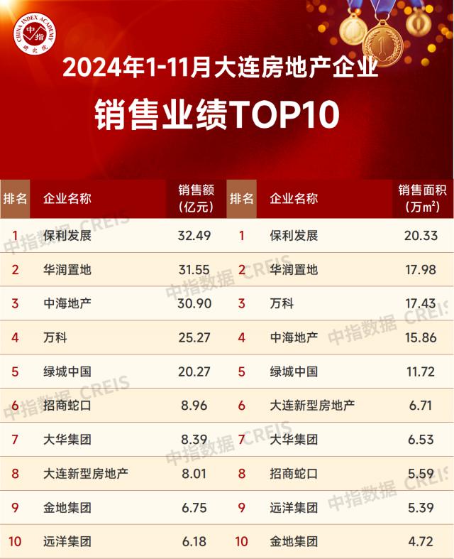大连房地产公司2024年1-11月销售业绩排行榜