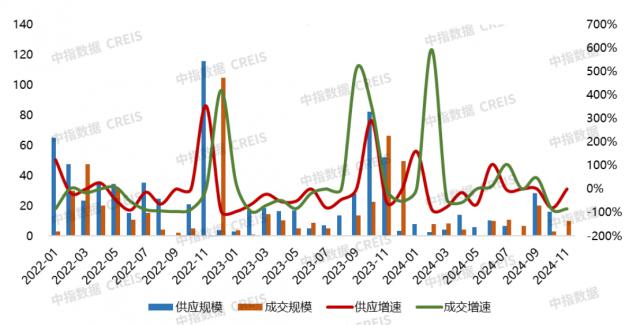 住宅供需规模:2024 年 11 月份,大连成交 1 宅基地,规划建面 10.15 万平,环比增长。