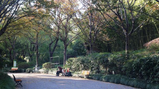 公园由南向北地形逐渐升高,从水面向山体转变,形成依山傍水的地形。从东到西是一条弯曲的主要游览路面,沿途是一道美丽的植物景观。通过灌木和地被植物的合理配置,形成了一道美丽的风景线。根据功能不同,公园分为草坪区、溪石湖池区、漫步休息区和健身区,是一个具有多种复合功能的“邻里假日公园”。