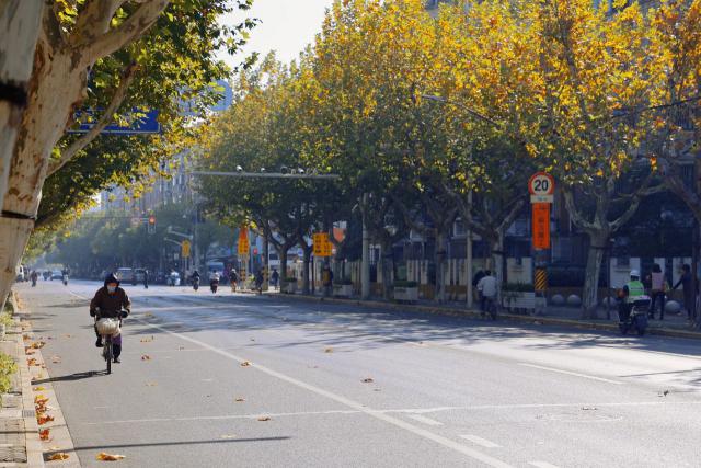 清峪路(花家邈路) - 新郁路)总长约 600 米,是上海市级林荫道,也是周边居民漫步的好地方。道路两旁种植 110 一棵梧桐树,秋天,或黄或绿的梧桐叶纵横交错,宛如地图,沿着树冠一路延伸,美不胜收。