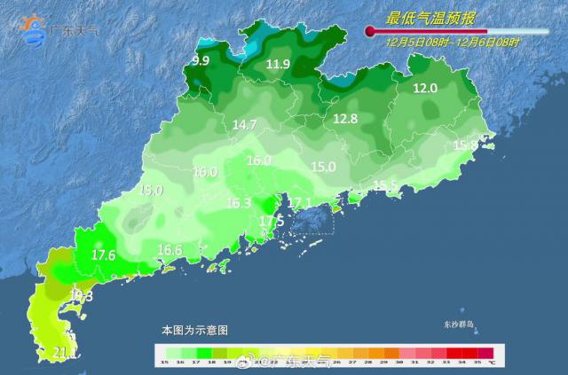 下周一(9 早晨气温达到最低水平,粤北部分县市有 5 低温约为℃。