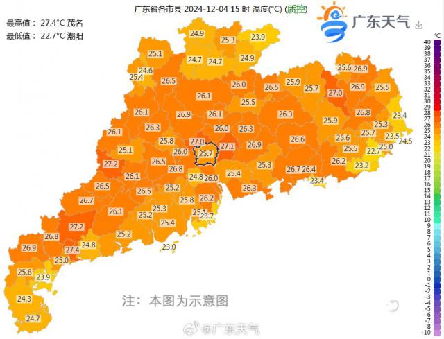 最近几天,大家有没有体会到广东的升温?昨日(4 日)15 当时,广东各地的气温都在。 26 ℃以上,茂名达到 27.4 ℃,站在太阳底下真有点热,“大鸡腿”都烤得“金黄酥脆”。