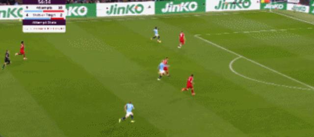 开场仅仅 8 在几分钟内,曼城获得了一个梦幻般的开始:京多安突入禁区传中,德布劳内头球进攻,B 席门垫射破门,配合行云流水般,主教练瓜迪奥拉也是握拳怒吼庆祝。