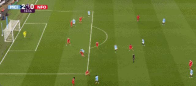 两队各有一次错过单刀机会后,曼城突然扩大了比分。