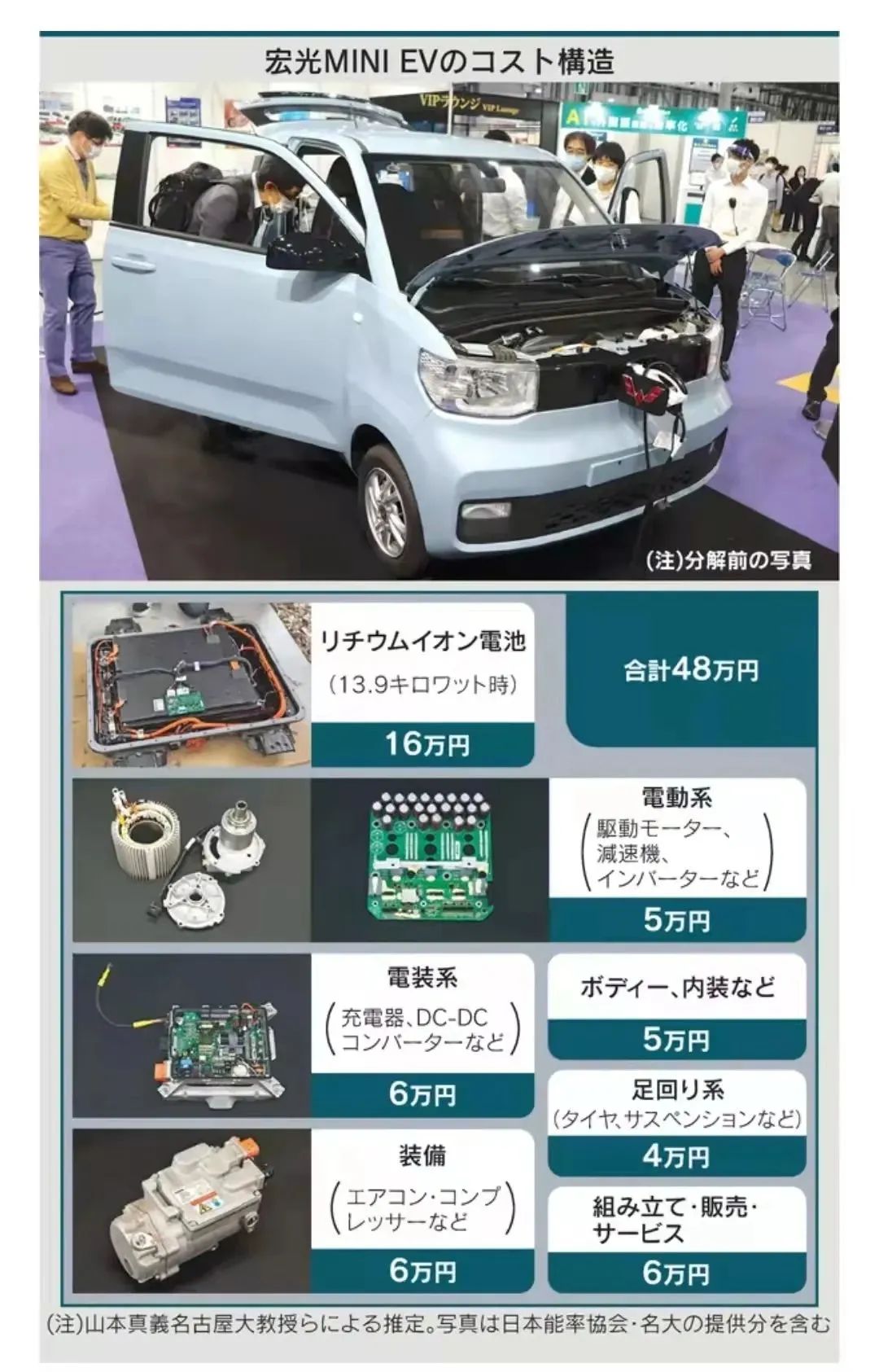 山本真义教授团队拆解了宏光MINIEV。虽然这款电瓶车个头小,但拆车后才知道什么是“苍蝇再小,五脏俱全”,但更重要的是,他的研究室也发现了很多不为大众所知的“降低成本的秘密”。