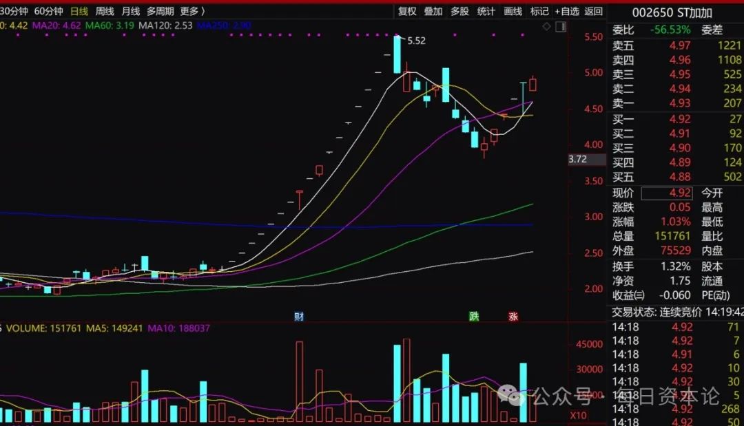 请注意,因为东方资产有“国家队”的背景,对于处境不好的ST加上来说,可能会迎来新的命运转折点。前不久,由于重组预期的影响,ST加股价一口气拉出了18个涨停板,可谓风光一时。