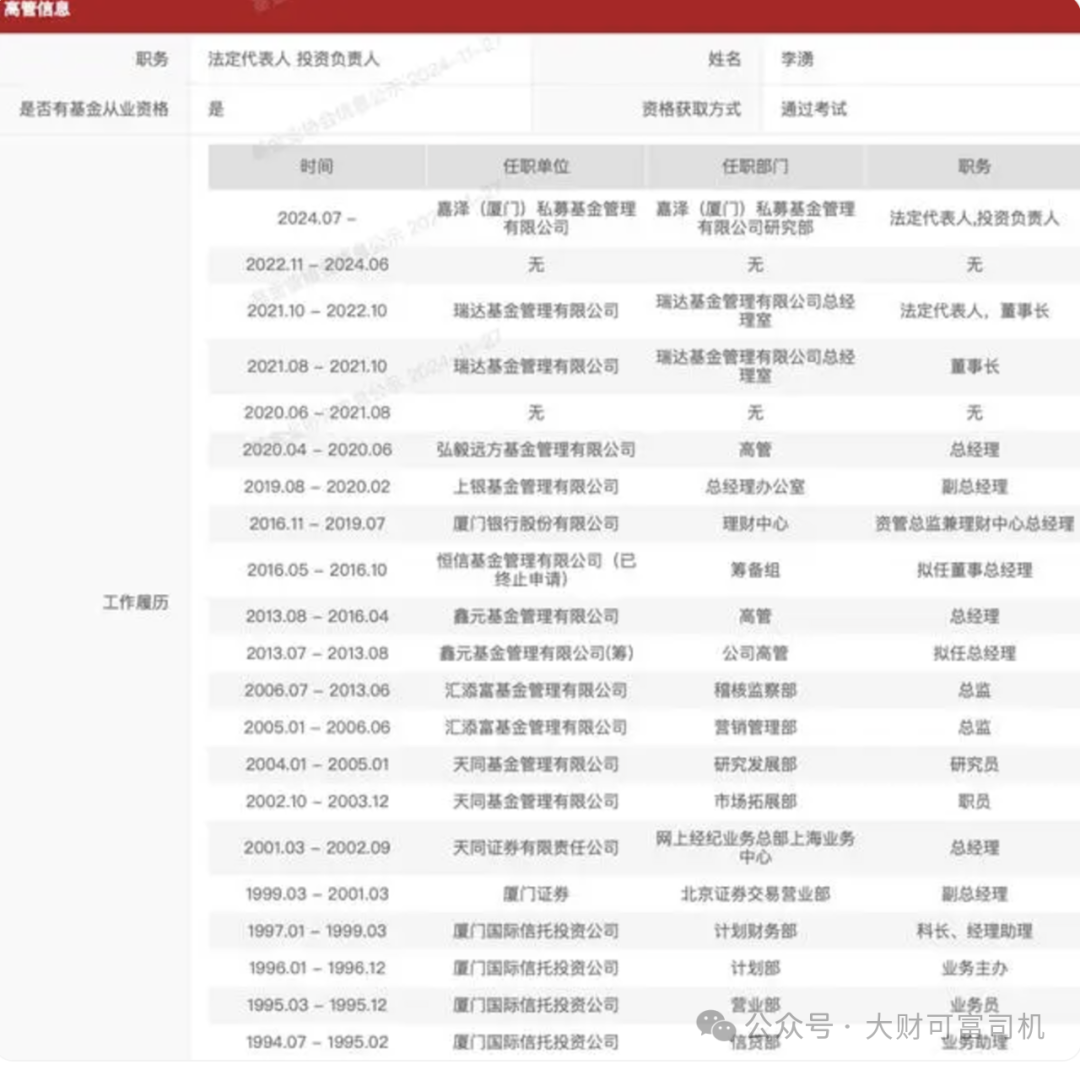 纵观李涌的职场历史,怎样才能有“勇气”二字!甚至有业内人士将李涌在公募基金上的工作视为“传奇”。对有多“奇怪”,看看这段历史就明白了!