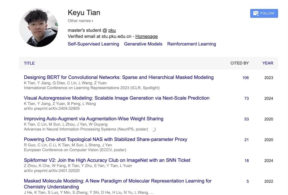 田柯宇的学术简历是完美的:本科毕业于北京航空航天大学软件学院,然后进入北京大学攻读研究生学位,向著名学者王立威教授学习。