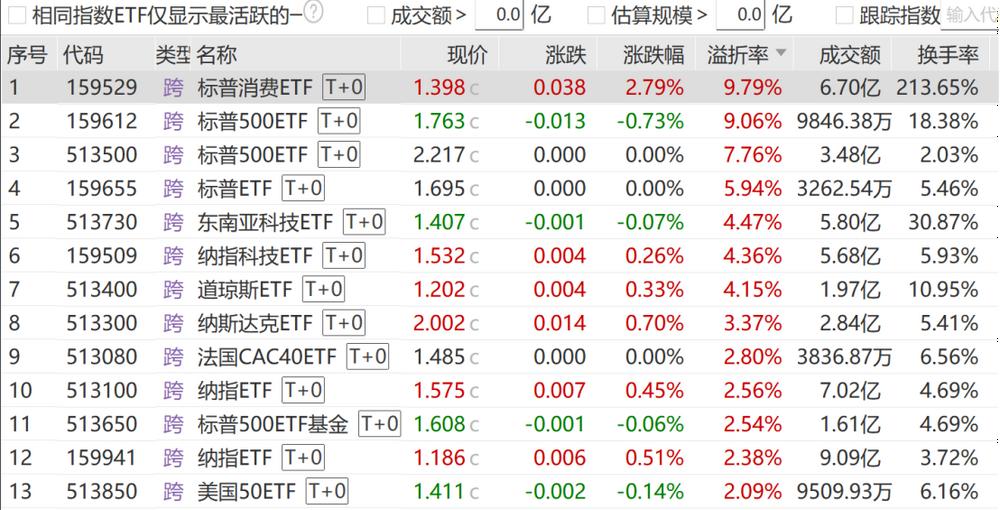 华夏标普500ETF、长城标准普消费ETF、ETF易方达原油、昨天,国泰标普500ETF发布了溢价风险提示。