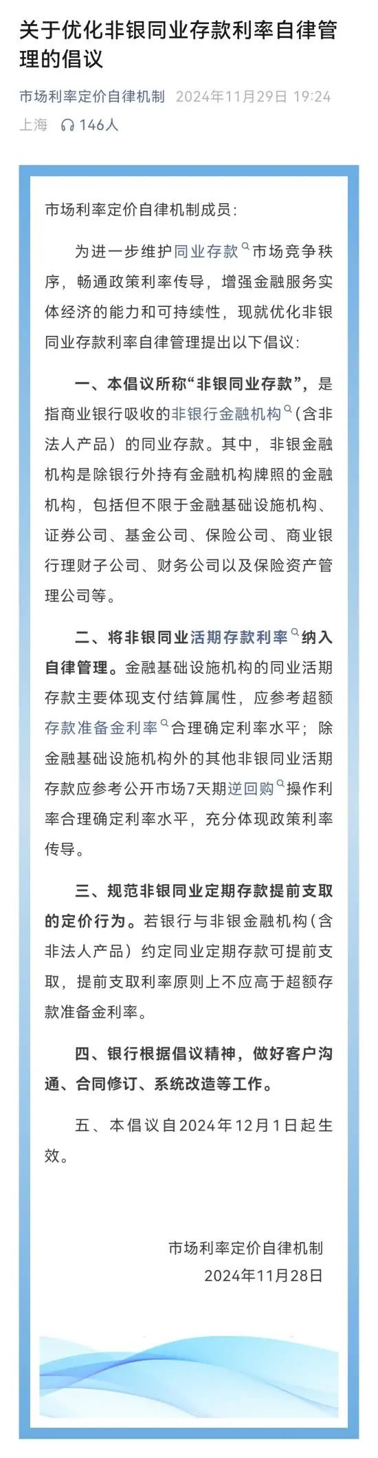 近日,市场利率定价自律机制秘书办发布《关于优化非银行间存款利率自律管理的倡议》(以下简称《倡议》),非银行同业活期利率同时包括自律管理规范提前支取非银行同业定期存款的定价。行为。