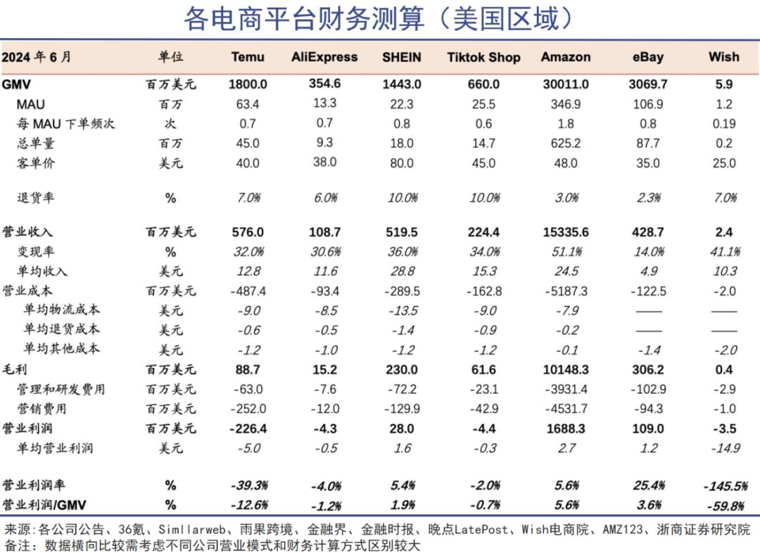 浙商证券曾经对美国本地主流电商平台和出海四小龙经济模式进行了简单的计算,选择头部平台,基本上是背靠国内强大的供应链能力,以短期效益换取长期市场。
