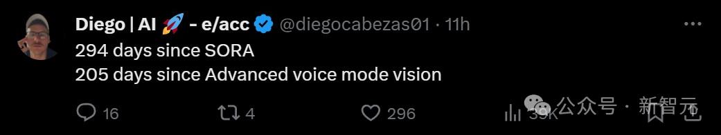 有人敲锣提示:Sora已发布294天,高级语音模式已发布205天,我们何时可以使用啊?