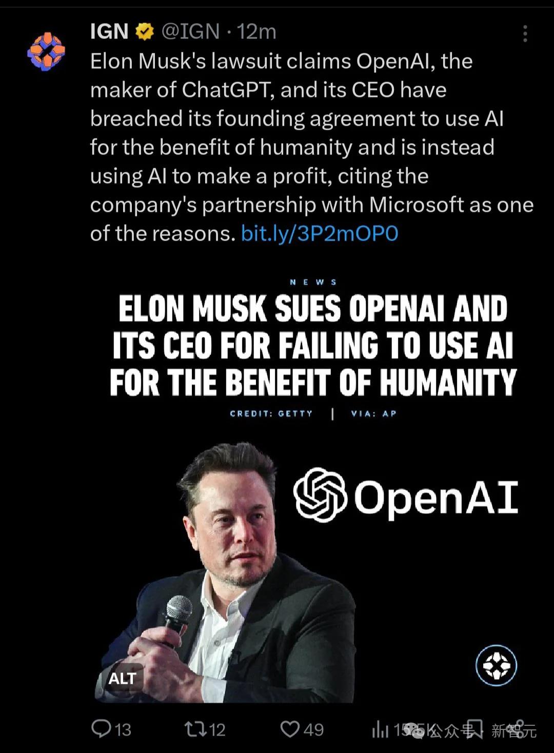 「我们共同创立了OpenAI。然而,他后来对它失去了信心,决定分道扬镳。」。