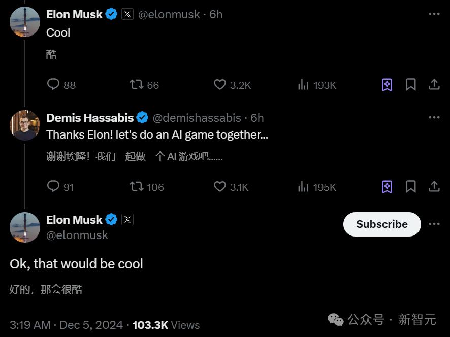 接着,Hassabis出现在评论区,邀请马斯克和谷歌DeepMind一起玩AI游戏,马斯克很高兴。