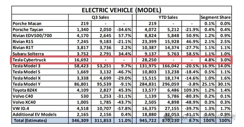 但是据《凯利蓝皮书》统计,截至今年第三季度,Cybertruck的销售额为28250辆,第三季度出售16692辆。