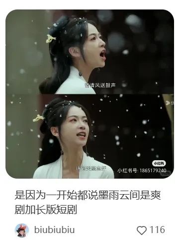 上半年,当《墨雨云》以其集中的酷点走红时,被观众评为“加长版短剧”。《墨雨云》之所以吸引观众,很大程度上是因为它酷剧的核心和剧情的反转。复仇的酷文主题切中了客户的爱好。在满足这一条件的基础上,节奏加快导致的逻辑bug很容易被容忍,后期引发的相关纠纷也会吸引更多用户观看。毕竟“黑红也是红”。
