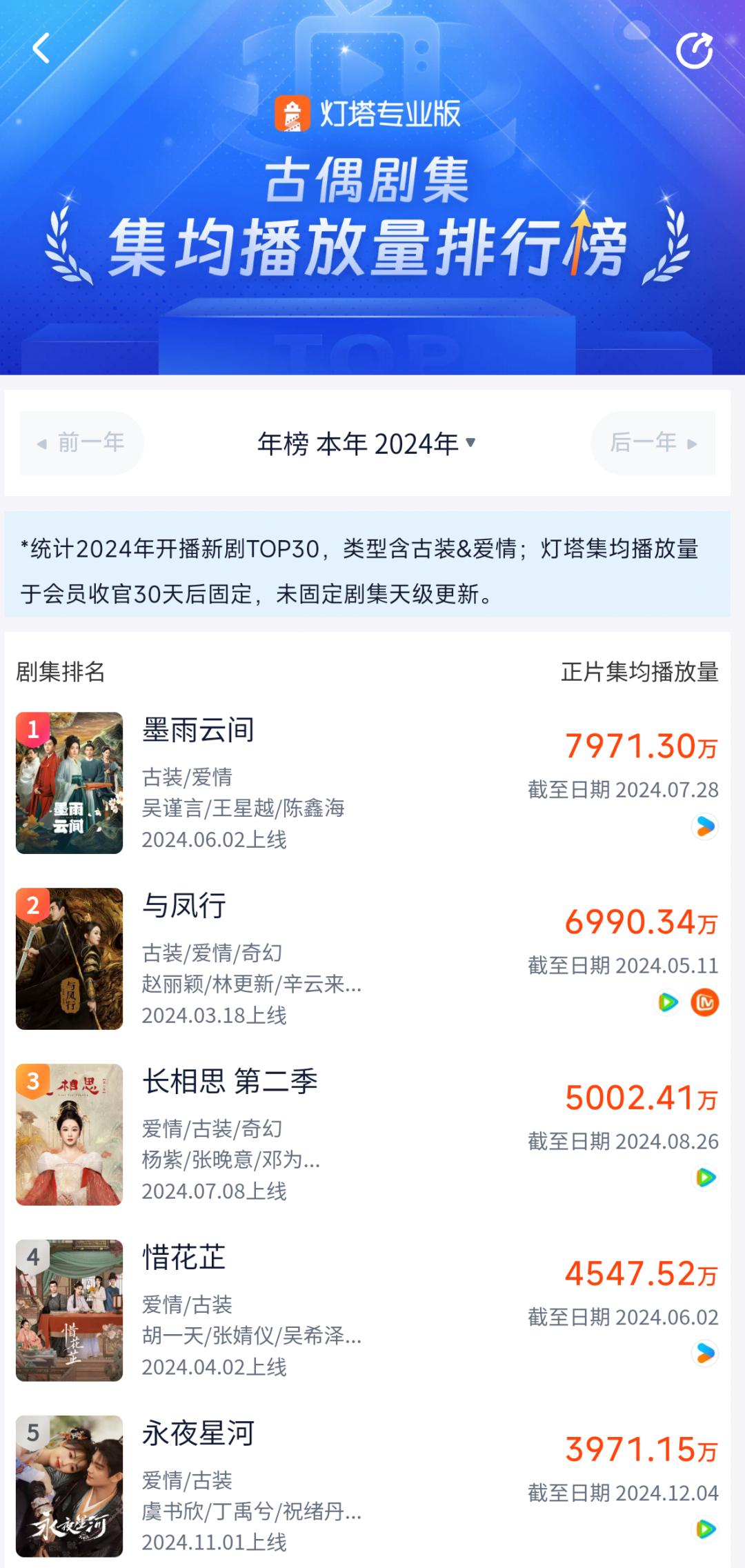 《墨雨云》以其酷点实现了“低开疯走”,广告数量也明显增加。授权和联合品牌超过20个,与《剧王》和《生活的乐趣2》持平。目前《墨雨云》在灯塔古偶剧的全部播放量排行榜上依然排名第一。无论口碑如何,从数据反馈来看,这样的长剧的确让观众耳目一新。