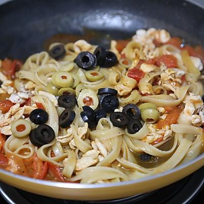 #西班牙橄榄比萨沙拉创意菜#营养午餐~西班牙橄榄烩面