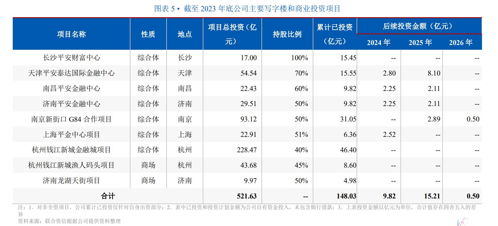 其中,截至2023年底,平安房地产主要商业投资项目详情图。图中提到的济南平安金融中心于11月26日正式开始运营。此外,平安房地产将在长沙、天津等地有新的项目布局。
