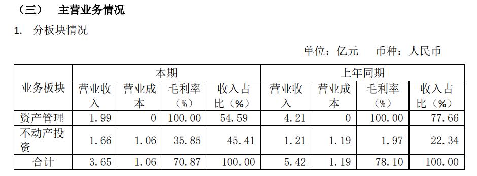 从业务领域来看,与去年相比,上半年平安房地产资产管理业务板块的营业收入波动较大,收入占77.66%至54.59%,主要受行业景气度等因素影响。公司的资产管理费收入、投资顾问费收入、投资管理费收入和财务顾问费受累。
