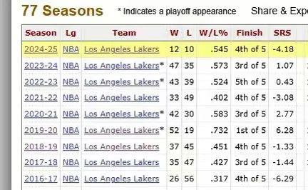 美国媒体总结了这样一个数据,湖人队现在 12 胜 10 负面,但场均净胜分为 -4.3 分,创出 2016-17 2023-24,赛季后的新低。 这个赛季,湖人队的正负值是 1,2019-20 冠军赛季,湖人队正负值 5.8。也就是说,这个赛季是詹姆斯加入湖人队至今最糟糕的一个赛季。
