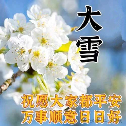 雪花漫天飞舞,飘走了疲惫和辛苦,飘走了忧虑和烦恼;雪花静静地落下,幸福和好运落下,幸福和美丽落下。大雪节气来了。祝你好运,幸福快乐!大雪节气,祝一切顺利。