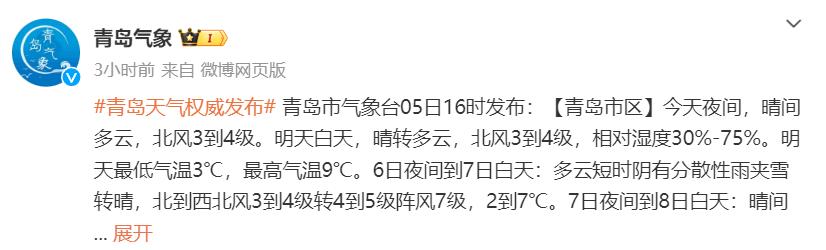 最新预报!从今以后,青岛有雨夹雪夹。 大风!许多地区0℃以下,最低-5℃→