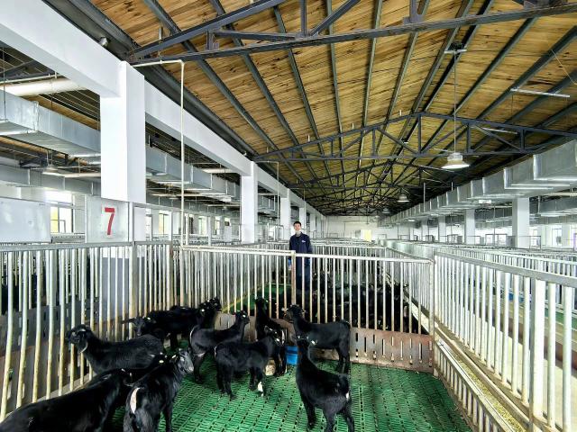 通过净道进入后,记者看到,母羊、公羊和即将出栏的肉羊住在不同的建筑里,待交配的公羊和母羊也有特殊的居住区。宽敞的羊舍配有冷风机、抽风系统和自动刮粪系统,其中几乎没有异味。“有了这些设备,不仅可以控制羊舍的湿度和温度,还可以实现羊粪清洗的自动化。"羊丁丁传凤说,"每天主要负责投放饲料,给羊妈妈接产,带羊下楼散步,大部分时间还是很悠闲的。"