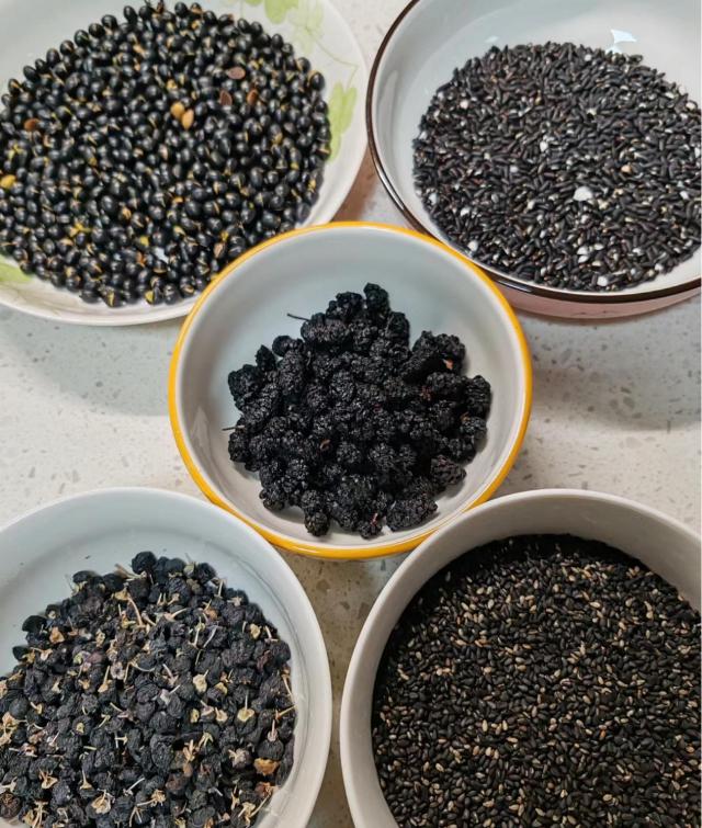 早起五红粉,主要是“以红养颜”,而五黑粉则是“以黑养发”!