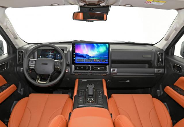 在内饰方面,新车在中控区保留了大量的物理按钮,配备了副驾驶把手,是典型的越野车风格。然而,新车还配备了10.25的科技大屏幕。 英寸全液晶仪表盘及 14.6 英尺悬浮式中控更加抢眼,支持 10 点触,语音交互,540 度影像(360 度全景影像 透明底盘等功能。